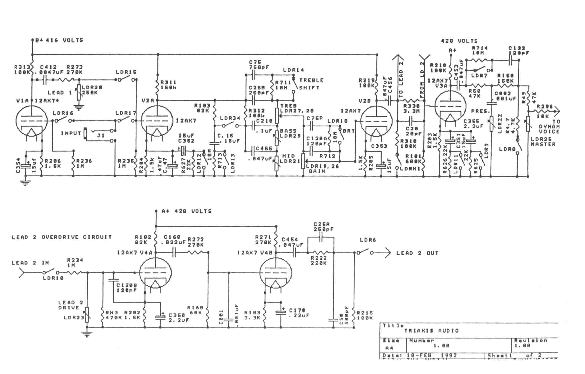 Taper and value of the Bass, Mid, and Lead 1 Drive are changed